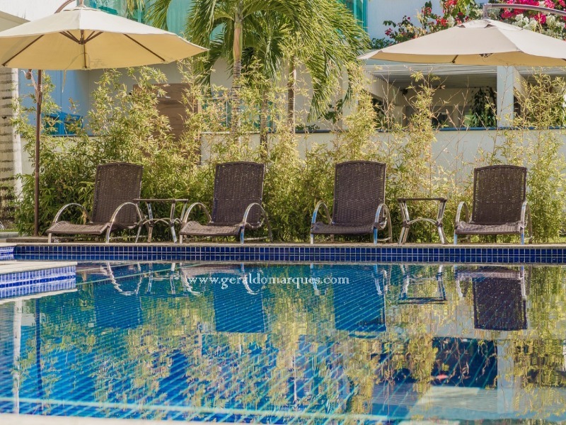07 Suítes todas com ar condicionado e água quente com aquecedor solar.
