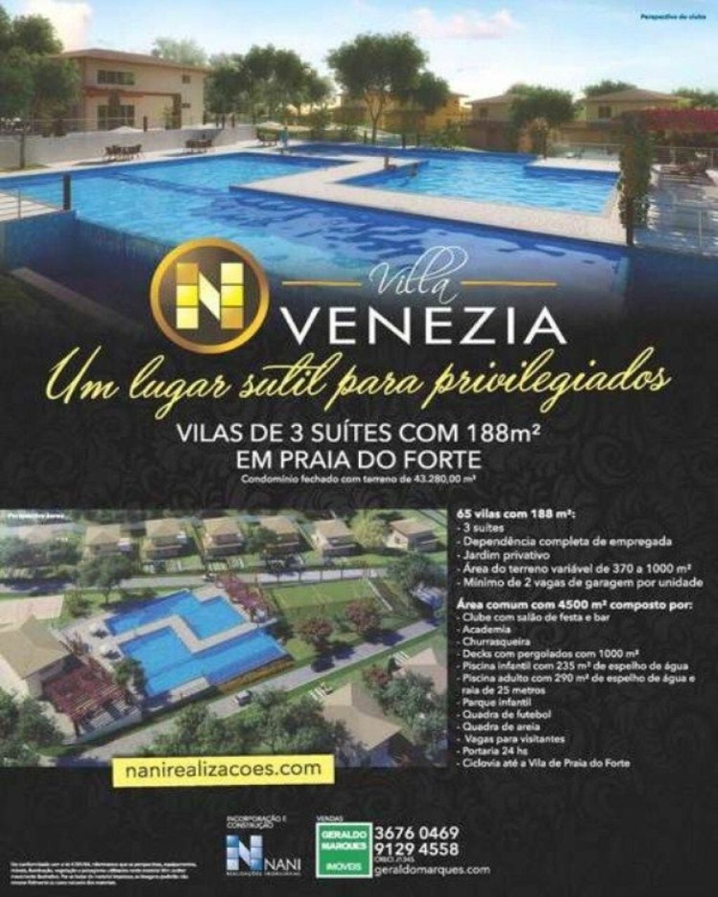 Villa Venezia: Condomínio com 65 unidades com 188m2 em terreno de 43.280m2.